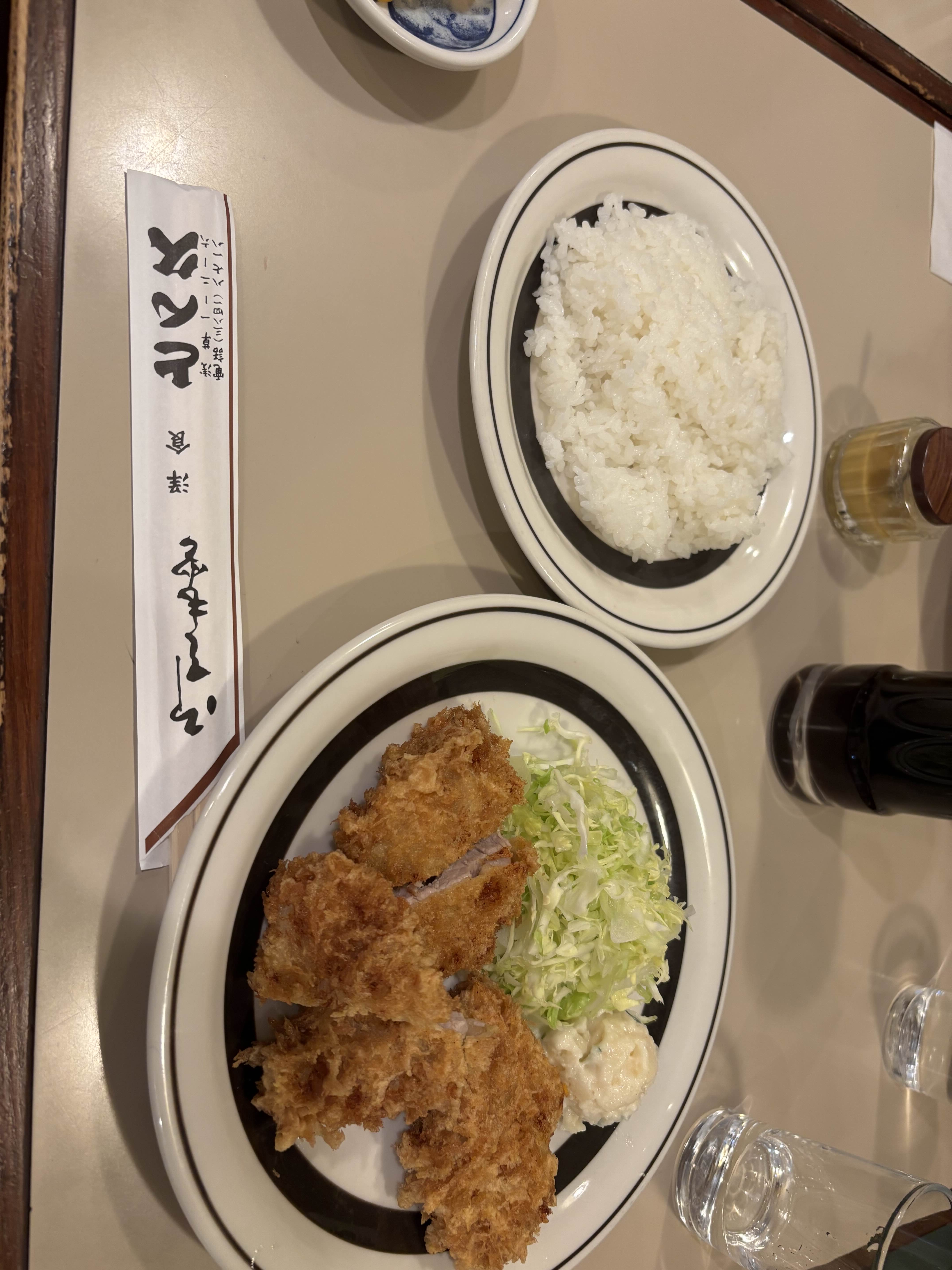 夜ご飯はとん久に行きました。筆者はヒレカツを食べました。おしかったです。